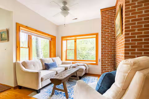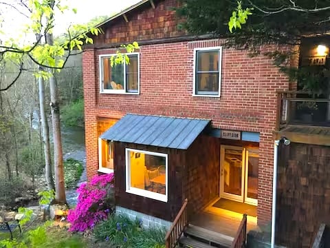 Left . . . right . . . front & center . . . water, water, everywhere! Settled up high in the bank of Spring Creek sits an incredibly UNIQUE 5 bedroom / 5 bathroom home, divided into 3 private apartments. Be prepared for INCREDIBLE VIEWS of the RUSHING WATERS of a 20-30 foot wide creek and distant views of the only WATERFALL in town from the 2 bedroom apartments. Out the front door, ~7,500 acres of Pisgah NATIONAL FOREST sits just across the road. The sights and sounds of the water are unparalleled with a 90 degree curve of trout-stocked Spring Creek just outside your windows, called Fowler’s Bend.