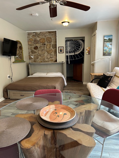 The Studio is a comfortable and inspiring studio apartment located in the rear of Gallery339 Hot Springs, a fine arts gallery and working studio of award-winning professional artist, Terry Thirion.