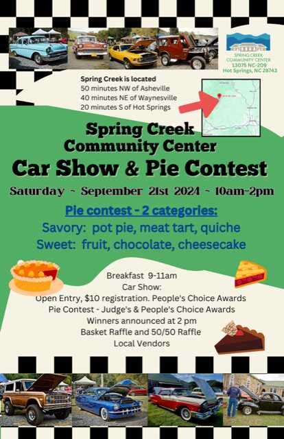 Car Show: Open Entry, $10 registration. People’s Choice Awards