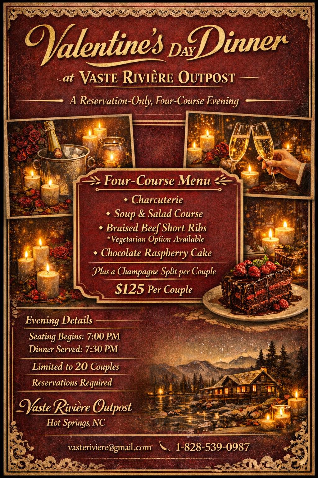 Valentine’s Day Dinner by Reservation at Vaste Riviere Outpost